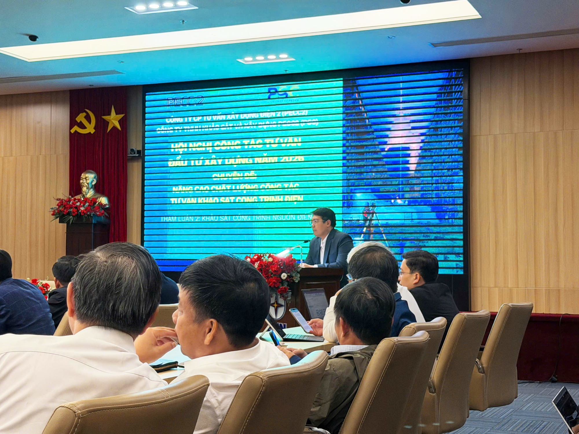Tại phiên làm việc này, Công ty Cổ phần Tư vấn Xây dựng Điện 2 (PECC2) đã có hai bài tham luận chuyên sâu, tập trung vào các giải pháp nâng cao chất lượng công tác khảo sát và thiết kế công trình nguồn điện.